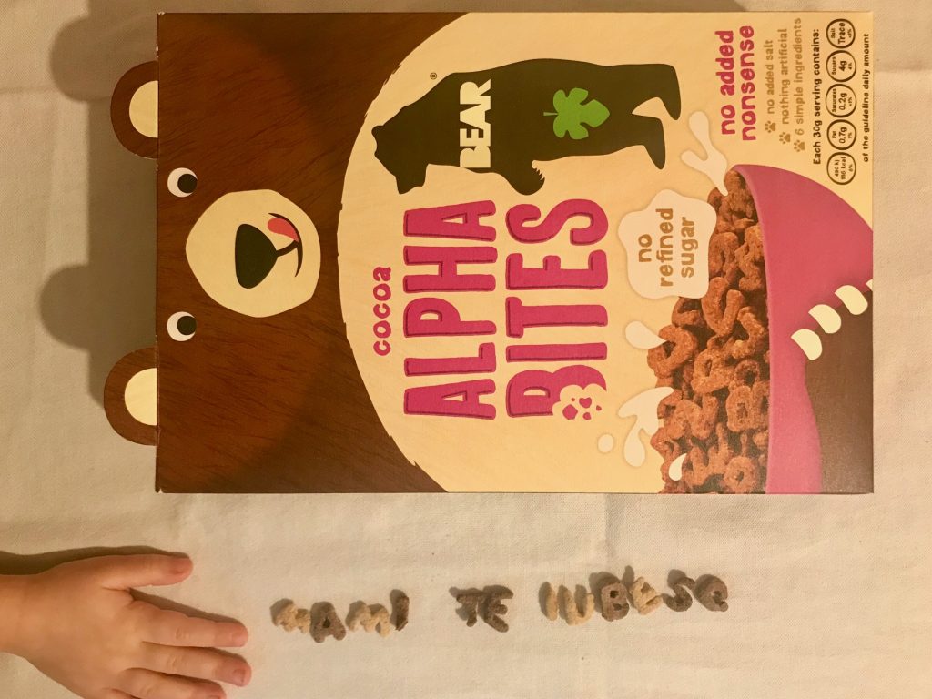 Dacă ar fi fost după gagicile mele, ar fi mâncat zilnic cereale BEAR cu lapte. Noroc că le-am strunit și le-am rugat să ne păstrăm tradiția de diversitate a meselor, mai ales a micului dejun. Pe lângă faptul că, am mai spus-o, cutiile sunt foarte simpatice, cu dye-cut și cu ursuloiul care îmbrățișează cutia prin designul ei, multicerealele BEAR Alfabet sunt litere delicioase și crocante cu care copiii pot scrie prin joacă. Ele sunt făcute din 5 cereale sănătoase și pot fi simple sau cu cacao.