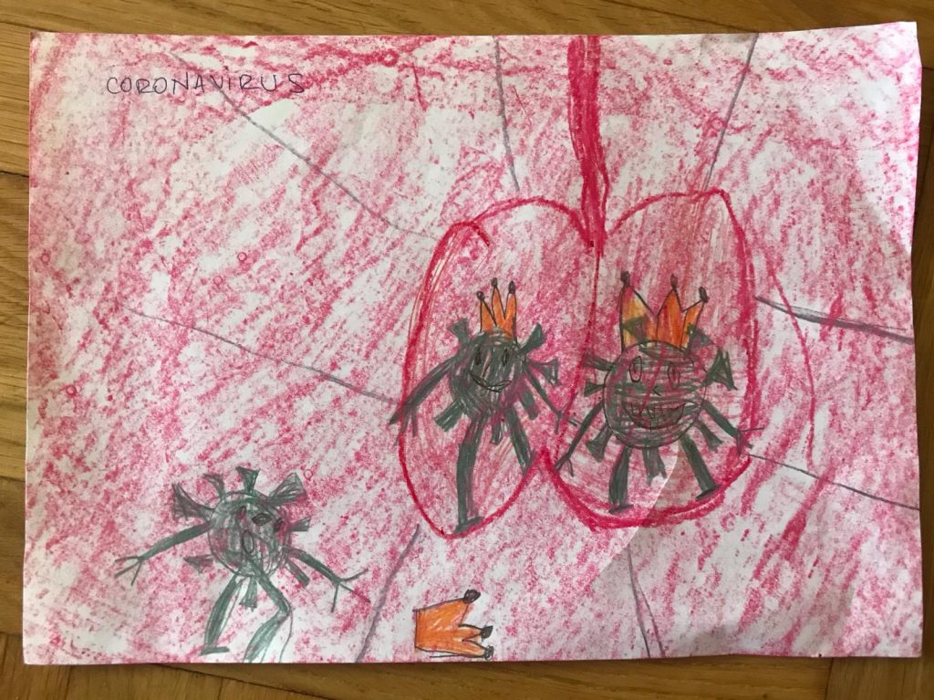 Le-am povestit despre analogia cu pădurea amazoniană care reprezintă plămânii planetei. Că noi oamenii, cei cu intenții rele desigur, au tăiat foarte mulți copaci din această pădure care acum riscă să fie amenințată. Și iată acum că o boală, un virus (covid 19) ne afectează plămânii, exact ce noi am distrus Mamei Natură.