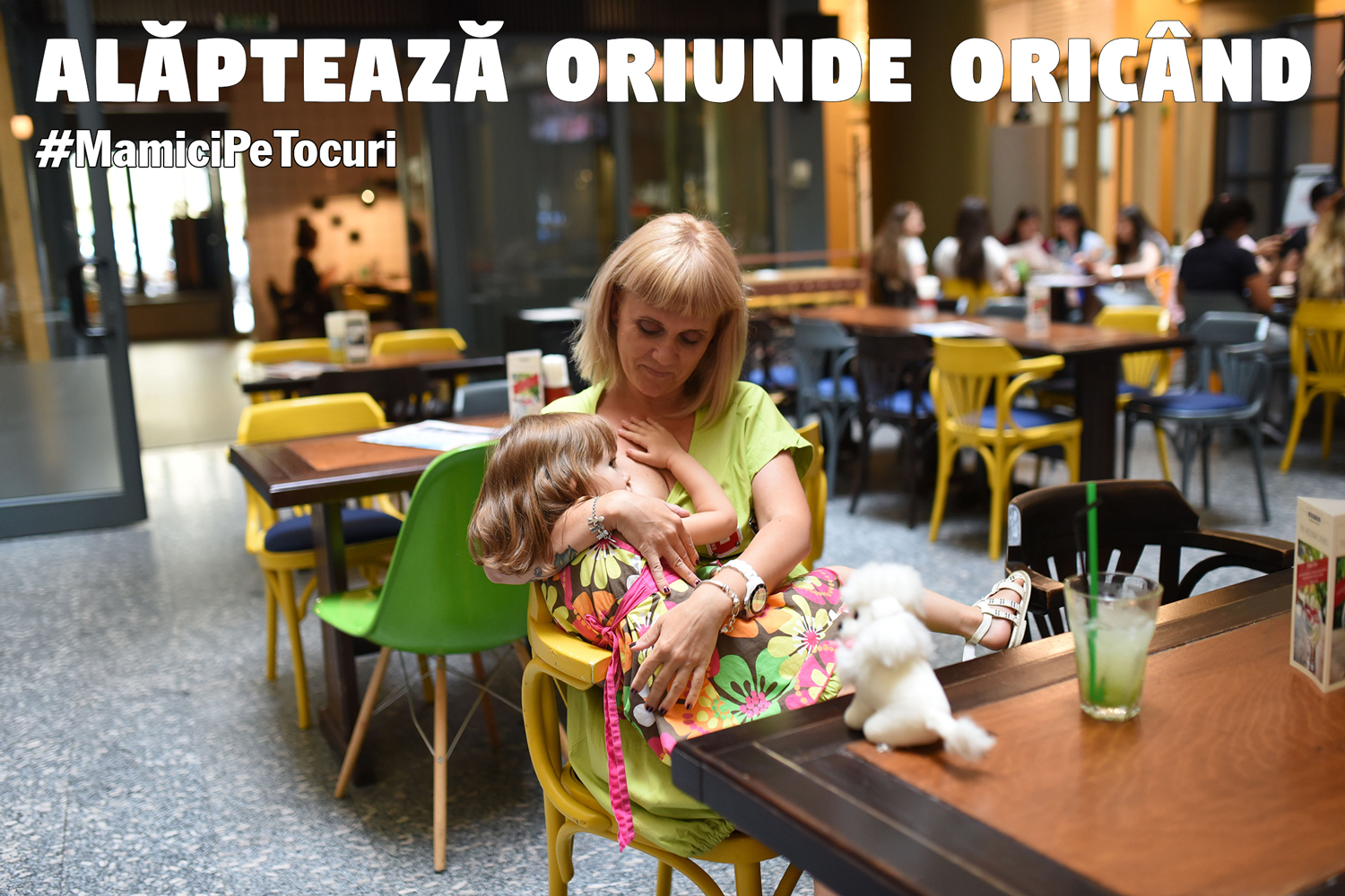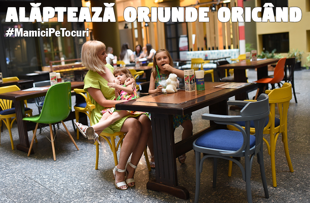 Poate vă întrebați, totuși, ce e cu pozele frumoase de mai sus ce conțin acel mesaj. Vă răspund cu drag pentru că nimic nu e întâmplător. La Social Media for Parents am cunoscut-o pe Ada Chindea care are blogul La ceai cu mamici. Într-o zi am întrebat-o ceva și așa am aflat de campania “Alăptează oriunde oricând”. M-am alăturat cu drag unei ședințe foto (mulțumim Diana pentru fotografiile minunate) , împreună cu Ada și cu Miruna. Dar cel mai fain e că Ada organizează de 4 ediții, un eveniment dedicat mamelor și numit sugestiv #MamiciPeTocuri. El va avea loc pe 4 august, la Crayon Club și se vor petrece multe lucruri interesante pe parcursul acelei zile, dedicate Săptămânii Mondiale a Alăptării.