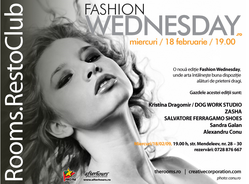 Fashion Wednesday – today…again Miercuri/18/02/09, 19.00 h, str. Mendeleev, nr. 28 – 30 Mai multe detalii AICI Share this:Click to share on Facebook (Opens in new window)Click to share on Google+ (Opens in new window)Click to email this to a friend (Opens in new window)Click to share on Pinterest (Opens in new window) Tags: event, fashion design, fashion wednesday