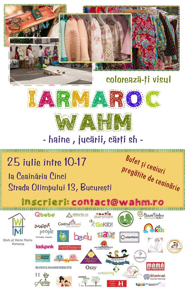 Chiar dacă sunt mama Love Yard Sale îmi place să susțin și inițiativele mamelor din comunitatea WAHM. În consecință, vă invit la Iarmaroc by WAHM, care este tot un târg de tip yard sale, doar că expozantele sunt exclusiv mămici care vând atât hainele lor cât și pe cele ale copiilor lor, de la trotinete și cărucioare la hăinuțe și jucării. Așa aflați și ce fac ele în timp ce își cresc copiii. Și știți foarte bine că sunt susținătoare ferventă a recirculării hainelor și obiectelor dragi.