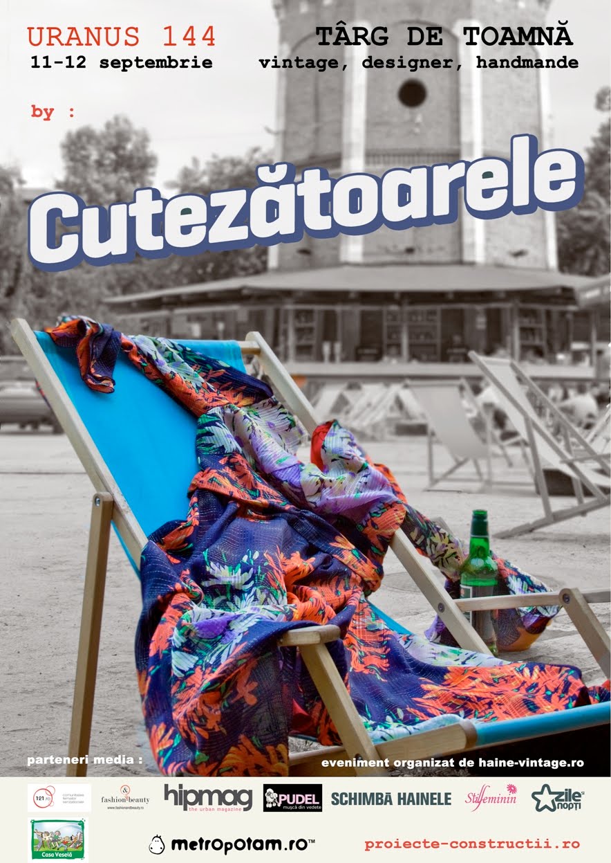 Deja celebrele Cutezatoare anunta primul targ de toamna. In weekendul viitor, 11-12 septembrie, la Uranus 144, incepand cu ora 13 iti poti alege garderoba preferata de la peste 20 de colectionari de vintage, designeri si creatori de accesorii handmade. Mai multe detalii AICI.